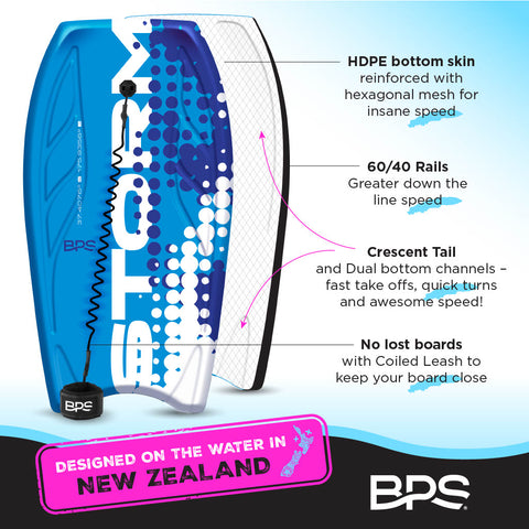 PERFECT FOR EVERYONE 👨👩👧👦 If you have a kid wanting to step up or an adult looking to catch some serious waves, the BPS 'STORM' PRO Bodyboard is designed to be the right swimming board for people of all skill levels. With its lightweight construction and compact size, it’s easy to take with you on all your beach adventures.