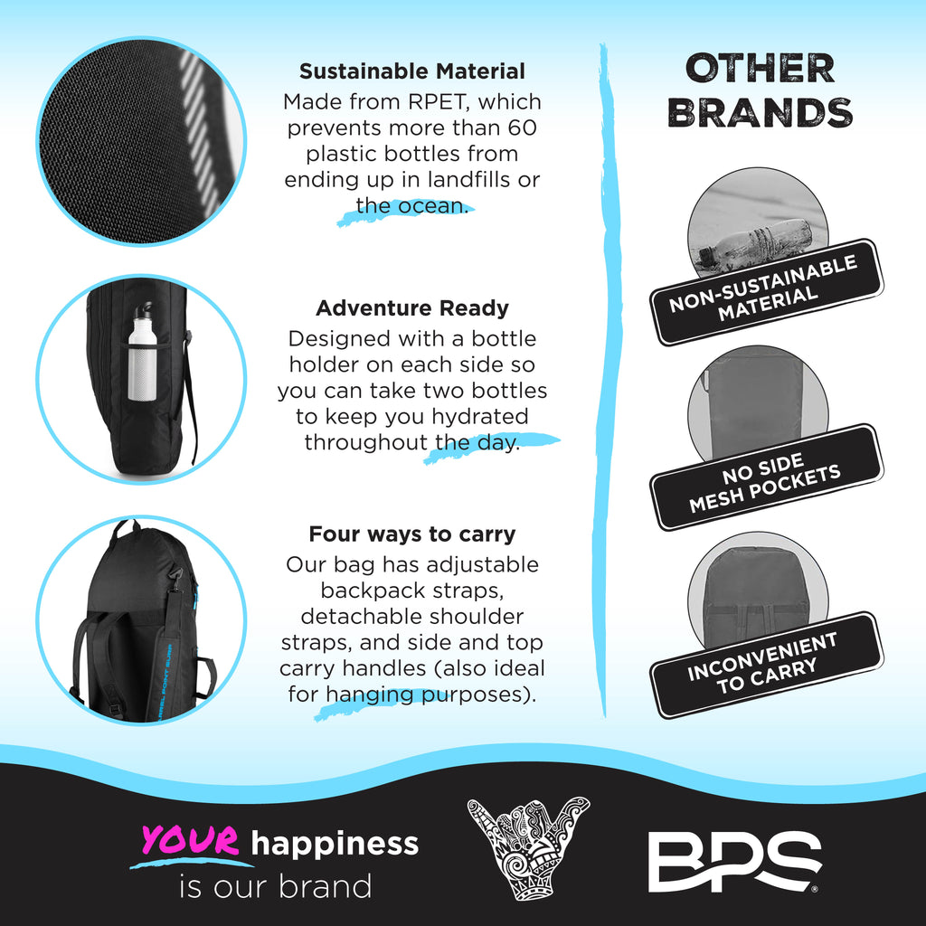SPACIOUS DESIGN – It can hold two large or three smaller bodyboards, or a huge amount of beach gear like towels and kids toys. Want to bring along multiple boards for different conditions AND a bunch of other stuff? No problem. Also features two large front pockets for storing accessories, a hidden pocket inside sealed with Velcro, and two bottle holders on the sides to access essential items conveniently.